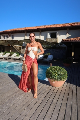 Look da Foto: Combine com nosso Maiô Manu Off-White para criar o contraste terroso/claro que é tendência no verão europeu.